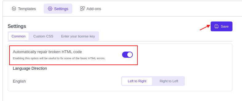 **Check if the Auto Fix HTML is set to YES in our settings tab:**